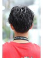 全体にスパイラルパーマを施し、S字に動く躍動感を演出します
