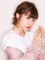 全体をコテで巻いてボリュームを出します。1つにまとめて、耳周りの髪とネープの髪はラフにくずします。最後にコテで巻くとしっかり動きをつけれます。