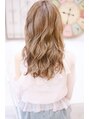 セミロングのローレイヤーをベースにもふもふしたうさぎみたいなウェーブヘアに!13トーンのフォギーグレージュで赤味を抑えた透明感のある色味にしました!デジタルパーマをかけるとスタイリングが楽になります♪
