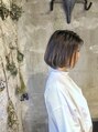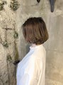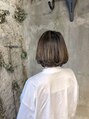ナチュラルカジュアルなボブ伸ばし中のボブやいつものボブに飽きてしまった時はボブのフォルムを変えると◎カラーはオトナなソフトグラデーション根本からハチ辺りまでを暗くしておく事で品のあるオシャレ◎色味はグレージュ系です♪