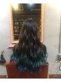 元々ブリーチ履歴毛先にアリ、今回は毛先に1度ハイブリーチ、その後ブルー系のカラーメインでカラー、今回はカットなし