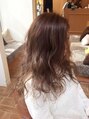太いハイライトと細いハイライトが細かくランダムに入った、ベースはブリーチなしのアッシュベージュ。ハイライトをたくさんいれることで全体をブリーチしなくても髪を明るくみせることができます。動きがでるカラーです!