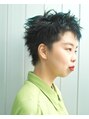 ベリーショートの毛先だけ、ブリーチをしてビビットなグリーンをオン。毛先のカラーが動くたびに表情を変えて、オシャレな動きを出してくれます。