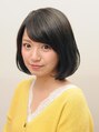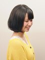 前髪を眉ぐらいの長さで流したボブスタイル。毛先が内に入るように軽くパーマをあて、動きが出せるように毛先をスライドカットして少し工夫。朝時間のない方やコテを使うことが苦手な方にオススメです。