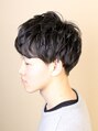丸みを出したラウンドフォルムに、アシメ前髪や2ブロック、ゆるめのパーマを取り入れ、立体感を強調したショートマッシュ。