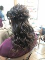 編み込みハーフアップアレンジ。Updo,Party Arrange,make up.ブライダル、ウエディング、二次会にもオススメ。早朝より、浴衣、振袖、袴、着物の着付けも承ります。【ヘアセット ヘアアレンジ ヘアメイク 立川 国分寺 早朝 浴衣 エクステ 袴着付け】