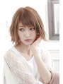 アゴ下ラインショートボブベースに動きが出るようにレイヤーを入れ、バランスを見て軽さも出す。カラーは明るめのベージュ系。