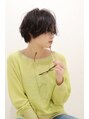 ナチュラルなショートボブ。乾かすだけで動きと、束感がでるようにパーマをかけます。WAXを、くしゅっと髪全体になじませて出来上がり。カラーはハイライトを細かくいれて、6トーンのブルーブラック。ハイライトを入れることで、透明感をプラス!