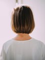 王道なボブスタイル。 バングをセンターで分けることで子供っぽくなりすぎないように。 カラーリングは少しでも動きや立体感の見えるように、ハイライトとローライトを入れました。自然な内巻きになる簡単スタイリングです。