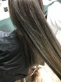 太めに深めにハイライトを全体的にいれます!前髪はかなり細めのハイライトを一枚だけ♪ベースのお色は暗めのブルージュ☆ハイライトは白っぽく見えるように!