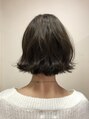 ロングからのバッサリショートボブに!カラーはマットブルーで落ちつかせ。内巻きボブでも、外ハネでも、気分によって髪型を変えられる、万能ボブです。