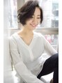 大人カワイイ、綺麗なシルエットのショートスタイルです(^^)段差がほんのりだけ入っているスタイルなのでストレートでもカールをつけても動きのあるスタイルになります☆カラーは地毛に近いナチュラルなアッシュブラックです(^^)♪