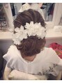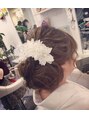 シンプルなまとめ髪には大きめお花で特別感を♪