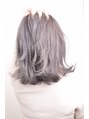 バイオレットを強めに入れることで、色落ち後も嫌な黄色味を減らすスタイルです。切りっぱなしのスタイルを毛先軽めにすることで動きを出して、さらに透明感を作りました。