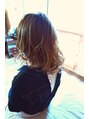 ロブのしっかりカール☆ハイトーンのベージュカラーが透け感を作ってくれます★