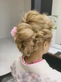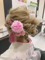 髪飾りもピンク系なので全体的に明るく柔らかい雰囲気を意識しヘアセット致しました。