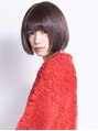 顔を包み込むようなフォルムの美ボブは小顔感をUPさせます。襟足は短めにして前下がりにすることで、重たくなりすぎず、スッキリとした印象のショートスタイルに。