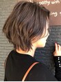 ハイライトを全体にほそーく入れてから、暗めのサファイアとシルバーをのせました。カットはえり足長めに作りトップにレイヤーを。