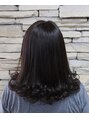 ブラウンカラーを全体にカラーをし、毛先のパーマを活かしたレイヤースタイル。