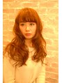 ロングスタイルにも動きをプラス☆ 毛先に少し段をいれてずらし、毛先をまいた時により動きが出やすいようにしてあります。 顔まわりはレイヤーをいれより動きをだしました。 ダークトーンカラーでも軽さがでるようにしてあります。