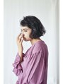 不規則なカールと動きによる立体ボブ。5レベルのスモーキーグレージュで深みとツヤ感をプラス。スタイリングはN.のスタイリングセラムで前髪をかきあげてスタイリングすることで大人の色気漂うスタイルに仕上げました。