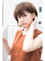 前下がりボブベースで重めスタイルのロブ。斜めバングのナチュラルボブを無造作&ルーズなアンニュイカールでヌーディな雰囲気に。カラーは,フォギーアッシュで。黄味を消して透明感を。伸ばしかけやヘアアレンジにも◎オススメです
