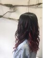 赤と紫のエクステを混ぜてつけたグラデーデョンスタイル♪ブリーチをしたくない方、マニキュアの色落ちも気にする方にもオススメです☆