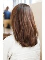大人可愛いミディ。グラデーションカラーで伸びても自然にメルトカラー。チークバング,うぶバング,リップバングも小顔に似合わせカット,パーマはエアウェーブ、デジタルパーマで再現性の高いカール感。ほつれウェーブ,無造作ウェーブ,耳かけ,簡単スタイリング