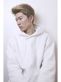 ブリーチした髪をあえてブロンドヘアに。カットは、前髪を長めに残してあげながら流して襟足はスッキリさせて外国人風のヘアスタイルにしています。