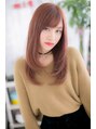 斜めバングと毛先ワンカールのストレート。ナチュラルだけど女の子らしいモテのテッパンスタイル。スポンテニアスカラーで個性的に仕上げてオンリーワンなヘアにすると旬顔。オレンジ系でポップな雰囲気にしたり、ピンク・レッド系でグラマラスにしてもOK!