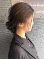 量が多く、硬めのミディアムヘアを柔らかく見せるようにおよばれスタイルにアレンジしました。