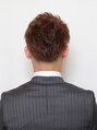 サイドからネープにかけて3mmにスッキリと2ブロック。 前髪はどちらに流しても対応できるよう、真ん中からサイドに向かうにかけて長くなるようカット。 トップは全体同じ長さで揃え、クセを活かした動きや束感が出るようにセニングを施します。<理容室>