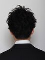 トップを立ち上げるようなパーマをかけています。清潔感を出すために前髪は上げてあります。耳の横と襟足を短くすることでスタイルをタイトにします。<理容室><理容室>シェービング/顔そり/ヘッドスパ/眉毛カット/頭皮ケア/メンズカット/フェイシャルケア
