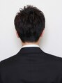 直毛のモデルさんなのでパーマをかけてトップをふんわりできるようにしました。2ブロックにすることでサイドのふくらみを抑えます。刈り上げ部分は薄くしすぎないくらいにして上品さを残します。前髪は上げやすいように中心を短くしました。<理容室>新宿