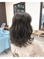 外国人風ブルーグレーカラー。色が抜けて黄色味が出てしまった髪色に、ブルーサファイアカラーで、ブルー際立つ外国人風グレーカラーに。コテで柔らかく巻いて、ふんわりと仕上げました。 [荻窪]