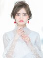 似合わせ小顔カット。顔周りのスッキリ感と後頭部の丸みと襟足のシャープ感を合わせたメリハリショート!大人カワイイ雰囲気に!カラーはどの服にも合うベージュ系※トップにカーラーを2本巻くとにより、バランスが◎【ブックマークをしてご提示下さい】