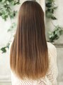 スーパーロングな長さでも重たさが強調されないように毛先にかけてグラデーションカラーをいれました☆サイドにはバツっと姫カットでカジュアルさを演出しました。ストレートから巻き髪までオッケーなスタイルです!!あまり軽くなり過ぎない事が重要です!!