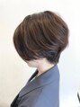 前下がりのショートヘア。カットでしっかり形を創るので、ラフに毛先を散らしてスタイリングするだけです。髪質、クセ、顔型に合わせるのでご相談ください。