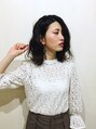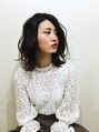 クールビューティーに仕上げたヘアスタイル。ダークカラーの中にも柔らかい浮遊感を出して春らしさを。