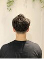 ツーブロックでまわりはバリカンで6mm。前下がりベースのマッシュ。カールをつけて重くなり過ぎないように動き出して無造作な仕上がりに