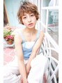 小顔に見える厚めバングの斜めバング。流し前髪の大人かわいい、毛先のみアンニュイカール。モダンショートとグレージュショートの混ざったスタイルです。無造作な毛先はワンカールで巻いてます。前下がりだけどマッシュなスタイルで黒髪でも似合います