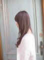 ゆるっとしたほどよい脱力感がかわいいロングスタイル。毛先には重さを残しながら軽くしていくことで抜け感を作っています。カラーは柔らかさのでるピンクベージュでツヤ感もプラスしてあります