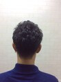 後ろと横に高く設定したツーブロックを入れました。クセが強いので、クセをいかせるように切りました。