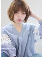 大人ひし形ショート。グラデーションカラーで伸びても自然にメルトカラー。チークバング,うぶバング,リップバングも小顔に似合わせカット,パーマはエアウェーブ、デジタルパーマで再現性高いカール感。ほつれウェーブ,無造作ウェーブ,耳かけ,簡単スタイリング