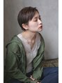 ウェットスタイリングでタイトめショートヘア。前髪は流してクールに。可愛さもあり、大人っぽさもあるクールなショートヘアです。