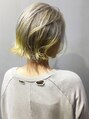 数回のブリーチで透明感のあるベースを作った上にベージュアッシュとイエローのハーフカラーをプラス