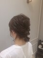 ゆるっとした大人っぽいアレンジです。全体をしっかりと巻いてサイドはねじりながら下の方でくるっとまとめてあります。ぬけ感のあるまとめ髪なのでオススメです!