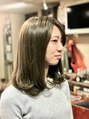 マット系のアッシュベージュのミディアムスタイル。落ち着いている色なのに透明感が!!赤味が出やすい方におすすめカラー!