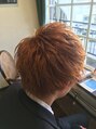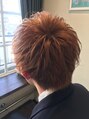 ハイトーンレッド系カラーの、マッシュレイヤースタイルです。周りを刈り上げることにより、フロント・トップとの長さとバランスが取れ、都会的なおしゃれなシルエットになります。