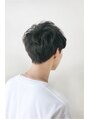 前髪を少し長めに残したショートマッシュスタイルです。雨に濡れても、風に吹かれても崩れにくくセットしやすい様にパーマを毛先にかけました。